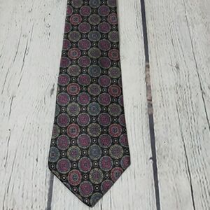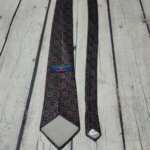 Vintage Italian Silk Black Purple Eclectic Medallion Print Tie