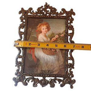 Vintage Italy Ornate Brass Picture Frame Portrait Of Princess Maria Christina. Condition is pre-owned and vintage. Italian made... Appears to be solid brass. Has a lithograph print called "Portrait of Princess Maria Christina by Elisabeth Vigee' Le Brun. Measures about 10" x 7" tall. Please see all photos for detailed condition.