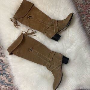 Vintage JACK ROGERS Riding Over Knee Beige Leather Boots Size 7.5
