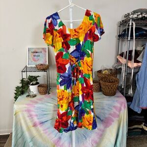 Vintage JAMS WORLD Vibrant Floral Dress tie back size XS