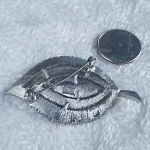 Vintage JJ Silver Leaf Lined Stem Pin Brooch