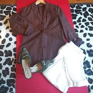 Vintage J. Jill Chocolate Brown Linen Blend 4-Button Blazer size 8