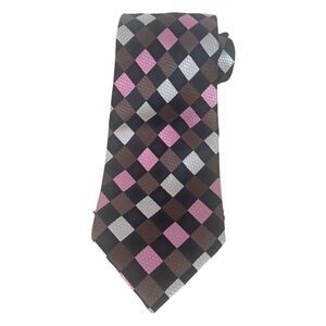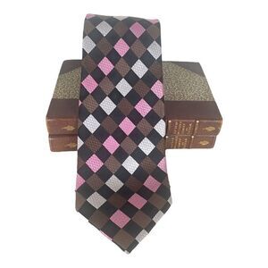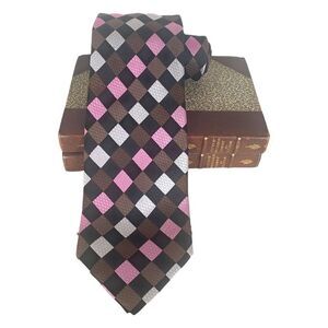 Vintage Jacques Monet Silk Neckwear Tie A standout pink black brown cream checkered print adorns this unique piece