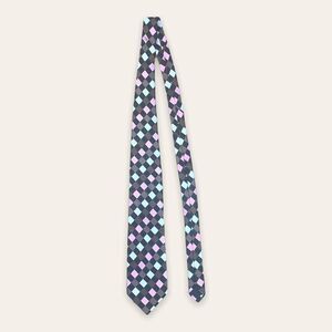 Vintage Jacques Monet Tie Pink Black Checkered Pattern Silk