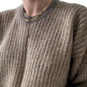 Vintage Jaeger 100% Alpaca Grey Tan Striped Soft Oversized Preppy Sweater Sz L