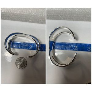 You are looking at a vintage James Avery solid and heavy 925 sterling silver crossover infinity design cuff bangle bracelet. The texture is smooth and shiny. The unisex design of this highly polished cuff bangle is desirable and reminded me of Tiffany & Co. that I have in my collection. In excellent condition.