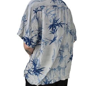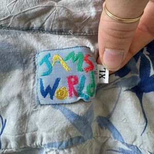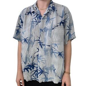 Vintage Jams World Womens Blue Tropical Palm Tree Hawaiian Button Down Sz XL