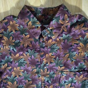 Vintage Japanese Maple Leaves Pattern Hawaiian Shirt, Made in USA, Size Medium - Measures p2p=22" Length=29" - Excellent Condition, No Flaws