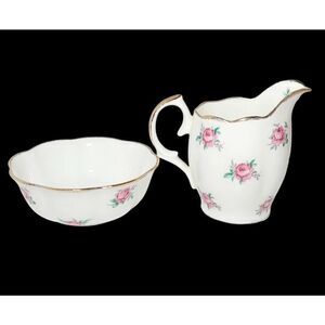 Vintage Jason Creamer and Open Sugar Bowl Pink Bud Roses Gold Trim England