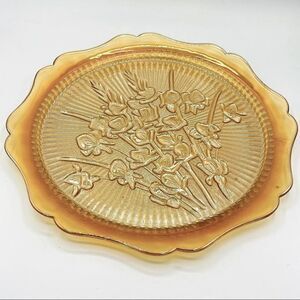 Vintage Jeanette Iris Iridescent Carnival Glass Serving Sandwich Round Plate