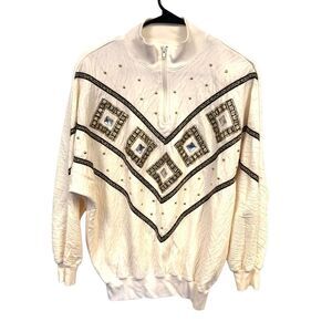 Ladies super cute cream colored multicolored jewel embellished vintage statement sweatshirt by Rafael. Excellent vintage condition. Ladies size large.