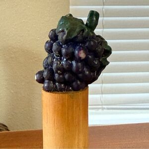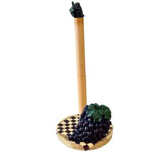 Enhance your kitchen with this charming grape design paper towel holder. Featuring a natural wood finish and vibrant purple grapes, it adds a touch of elegance to any space.