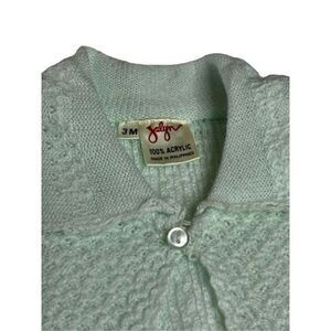 This charming vintage baby cardigan is perfect for keeping your little one warm and cozy. The delicate knit fabric is gentle on their skin, and the single button closure makes it easy to put on and take off. The cardigan is also a great layering piece, and it can be dressed up or down.