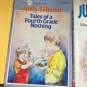 Vintage Judy Blume books freckle juice 1986, tales of a fourth grade nothing 1986, otherwise known as Shiela the great 2004, Tigers eye 1982, starring Sally Jay Friedman as herself, 1979 and tales of a fourth grade nothing 1972. all in good condition some have names written on them are in them, but no ripped pages. Six books in all. One has a little tear on the outside as shown in photos.