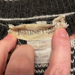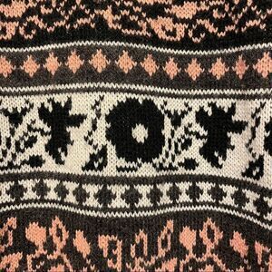 This vintage sweater is in great condition. The only issue is a tiny bit of pulling at the end of the sleeve. It is a nice color combination that you don’t find often in a vintage sweater. It would make a great oversized sweater and is very cozy!