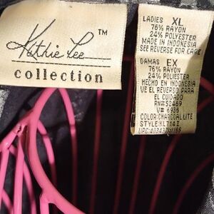This vintage Kathie Lee Collection long sleeve button down, with collar blouse is gray with a metallic sheen to it in a floral print. Size XLarge. Cuffs of sleeves also has buttons. 76% Rayon and 24% polyester. Pre-owned and in excellent condition. All offers welcome.