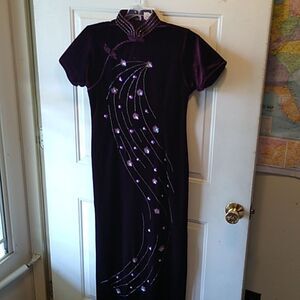 Vintage Kevin T Elegant Purple Large Maxi Dress Embellishments Special Event
