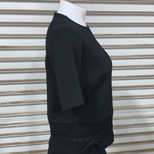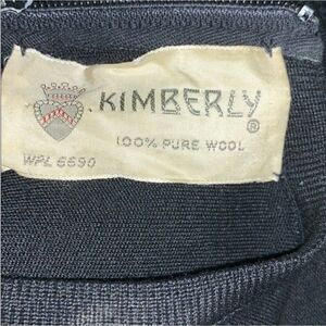 Vintage Kimberly black knit 100% wool top with crochet accent at hip zip up back wpl 6690