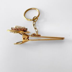 Vintage Pink Cameo Gold Tone Kings Key Finder Key Chain Clip. In EUC
