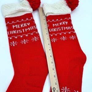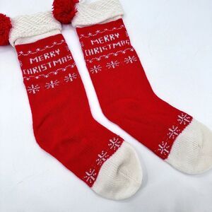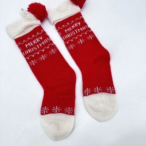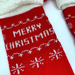 Vintage Knit Christmas Stockings 2 Pair Merry Christmas Red White Silver Retro