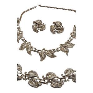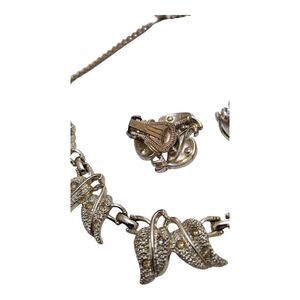 Vintage Kramer Necklace Clip On Earring Bracelet Set Silver Tone Rhinestone