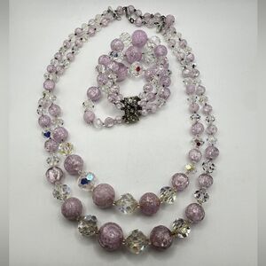 The necklace and the bracelet both have graduated light pink/purple acrylic beads in between all of that fabulous Aurora Borealis crystal!
