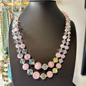 Vintage LAGUNA graduated acrylic and crystal beaded necklace and bracelet set!