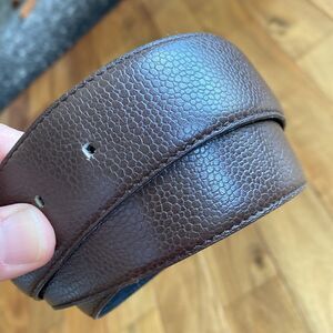 In very good condition. Made in France. Has a pebbled leather finish. Size 32 and is 1.5” wide. Has one small worn spot on buckle area - see the last pic.
