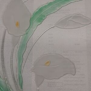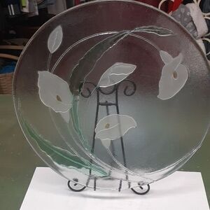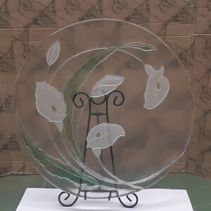 Vintage L. E. Smith Glass Platter Handmade Clear Glass Calla Lily 13" . Does have some minor scratches as shown in pictures. Lovely way to serve your guests.