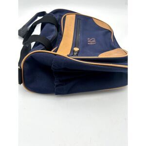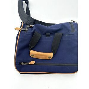 Vintage LL Bean Canvas Travel Bag Carry On Luggage Blue & Brown Leather Outdoor