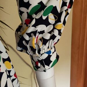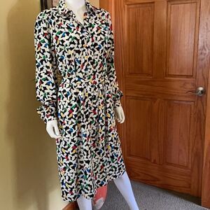 Score! You found the dress you’ve been waiting for! This feels so nice and is in perfect condition! Matching belt tie. Cool sleeves and shoulders as noted in photos. Grab it!