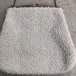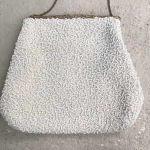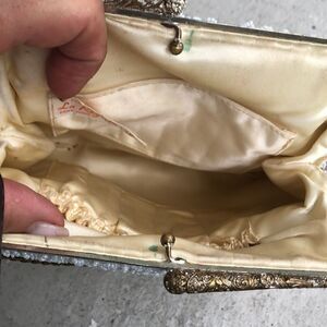 Beautiful and dated vintage evening bag. Check out the pictures measures across the bottom 9” x 7.5 chain drop is 5.5.