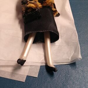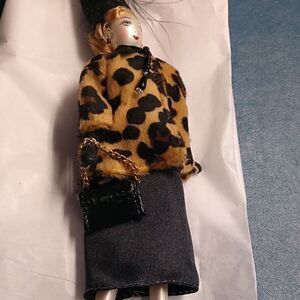 Stylish doll with a leopard print coat and black skirt. Perfect for collectors.