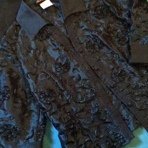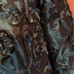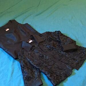 Believe me the picture don’t do this set justice. Beautiful dark teal set with cami & matching jacket. Cami is solid with a side zipper, jacket has a collar with 4 button front closures. Pattern on the jacket is raised & simply gorgeous. NWOT. Size 6,measurements are as follows: 36”, cami length is 20”, jacket has 3/4 length sleeves, is 21” long.
