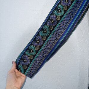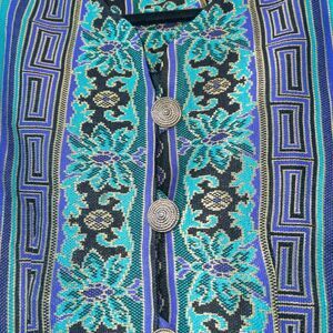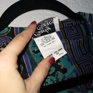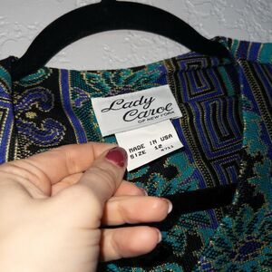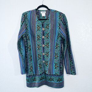 Vintage Lady Carol Blue & Green Art Deco Long Button Up Blazer Size 12