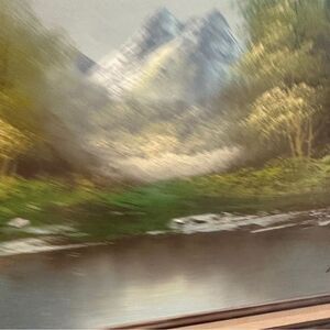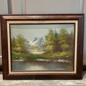 Vintage Landscape Oil Painting Signed | Mountain & Lake Scene Rustic Cabin Decor