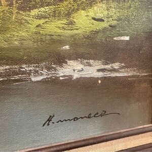 Vintage Landscape Oil Painting Signed A. Morelli | Framed Mountain & Lake Scene | Rustic Cabin Decor