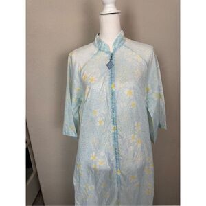Vintage Lane Bryant Tall Sheer Nightgown Blue Yellow Zip Up Excellent used condition. Like new! No sizing but measures