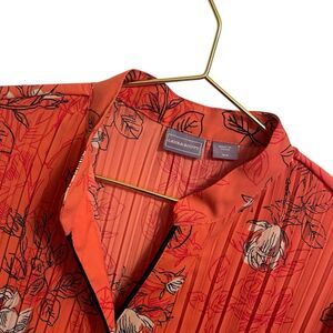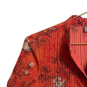 Vintage Laura Scott Button Front Leaf Print Blouse Orange Black MED