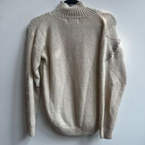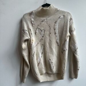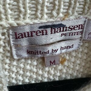 Vintage Lauren Hansen Women's Hand Knitted Mock Neck Long Sleeve Tan Sweater Size PM