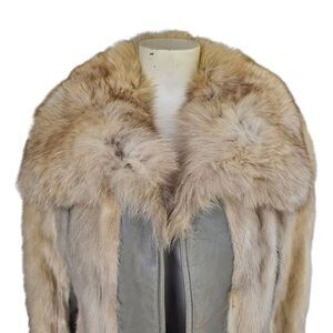 Vintage Lazarus Real Fur Gray Leather Coat Women’s Small 70s Fox Collar