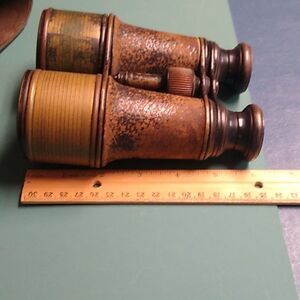 Explore the world with these vintage binoculars featuring a classic leather case. Perfect for outdoor adventures.