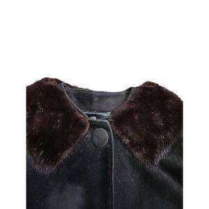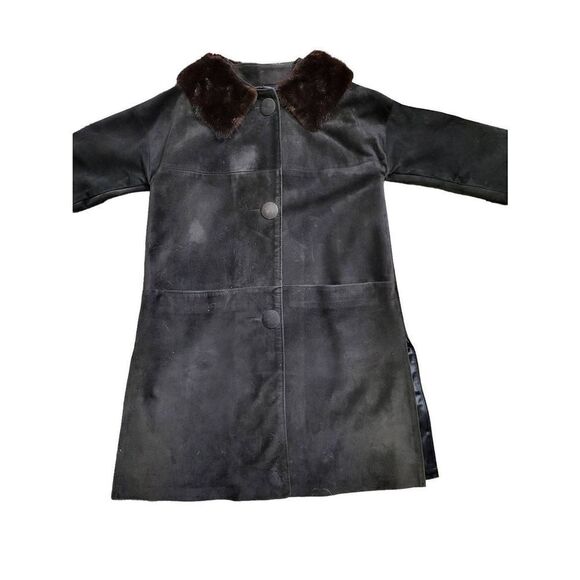 Gorgeous vintage suede jacket with mink fur collar. Satin lining. Slight rubbing of suede visible on front. No tags or size listed. Measures 21" pit to pit and 37" in length. 3 button closure front.