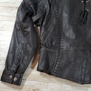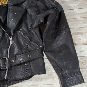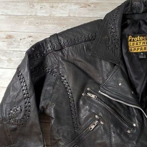 Vintage Leather Protech Cropped Laced Braided Woven Studded Biker Moto Jacket 8