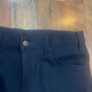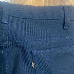 Deep navy colored 35 inch waist by 34 inch inseam. 100% Dacron polyester in excellent condition