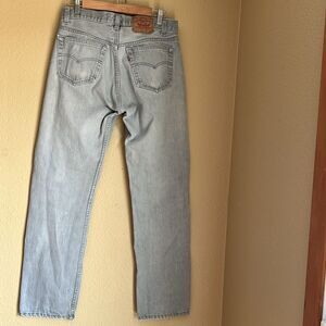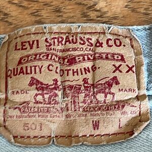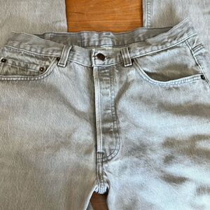 Gray with light fading, whiskering, distressing, and spotting as shown