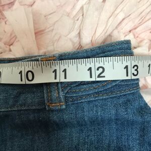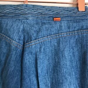 These jeans are so soft! Very high waisted. Waist is 13 inches laying flat. Length is 29.5. Orange tab Levi’s. Braided belt around the back. No pocket which is amazing for your butt! From the 70s.