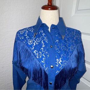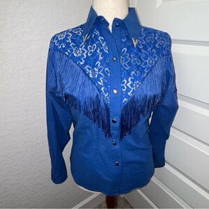 Vintage Lilia Smitty Lace Fringe Long Sleeve Button Front Shirt Blouse Top