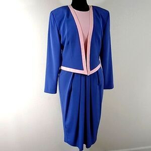 Vintage Lilli Ann Rare Pink & Blue Purple Dress & Jacket Size 12