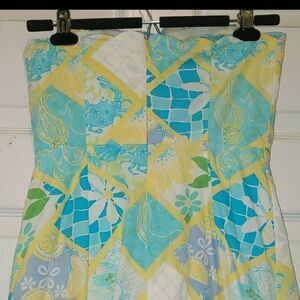 Vintage Lilly Pulitzer strapless patchwork summer ocean dress Sz 2